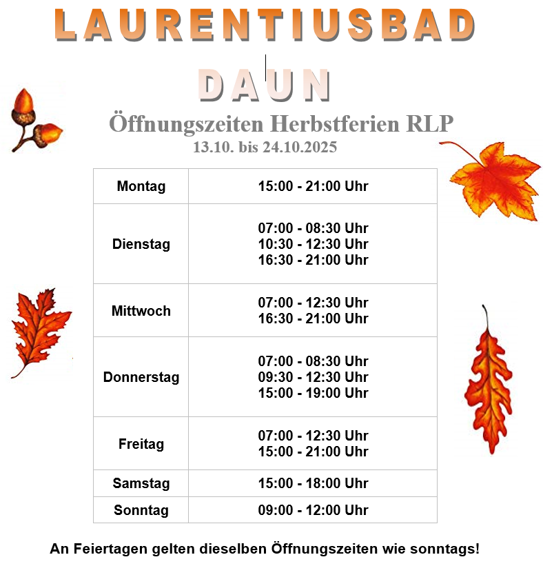 An folgenden Tagen sind wir leider nicht für Sie da und das Bad ist geschlossen: